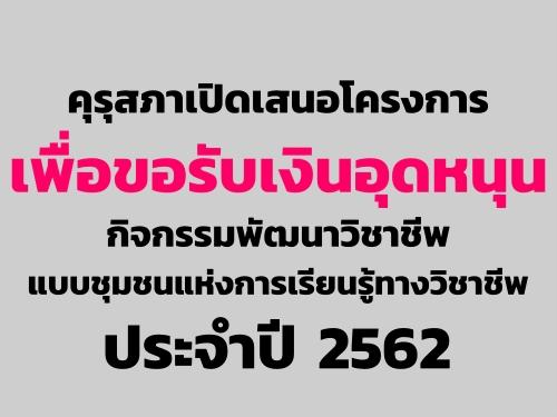 คุรุสภาเปิดเสนอโครงการเพื่อขอรับเงินอุดหนุนกิจกรรมพัฒนาวิชาชีพแบบชุมชนแห่งการเรียนรู้ ทางวิชาชีพ ประจำปี 2562