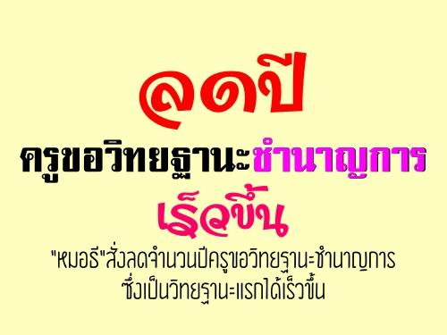 ลดปีครูขอวิทยฐานะชำนาญการเร็วขึ้น อ่านต่อคลิก[20 ก.พ. 2560](อ่าน 109,183 ครั้ง) (0.51%-314 ผู้โหวต) |