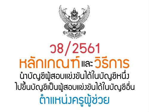 ว8/2561 หลักเกณฑ์และวิธีการนำบัญชีผู้สอบแข่งขันได้ในบัญชีหนึ่งไปขึ้นบัญชีเป็นผู้สอบแข่งขันได้ในบัญชีอื่นตำแหน่งครูผู้ช่วย