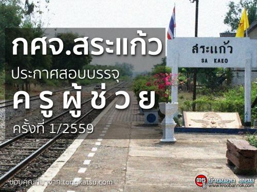 กศจ.สระแก้ว รับสมัครสอบแข่งขันเพื่อบรรจุบุคคลเข้ารับราชการข้าราชการครูและบุคลากรทางการศึกษา ตำแหน่งครูผู้ช่วย ครั้งท่ี 1 ปี พ.ศ.2559