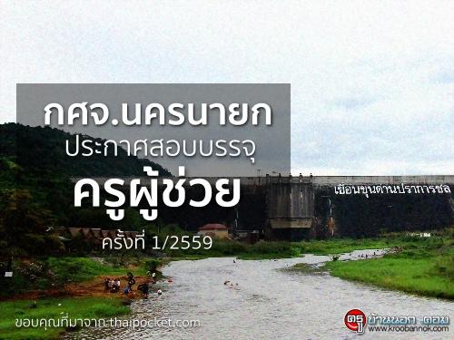 กศจ.นครนายก รับสมัครสอบแข่งขันเพื่อบรรจุบุคคลเข้ารับราชการข้าราชการครูและบุคลากรทางการศึกษา ตำแหน่งครูผู้ช่วย ครั้งท่ี 1 ปี พ.ศ.2559
