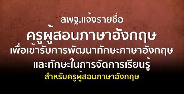 สพฐ.แจ้งรายชื่อครูผู้สอนภาษาอังกฤษเพื่อเข้ารับการพัฒนาทักษะภาษาอังกฤษและทักษะในการจัดการเรียนรู้สำหรับครูผู้สอนภาษาอังกฤษ
