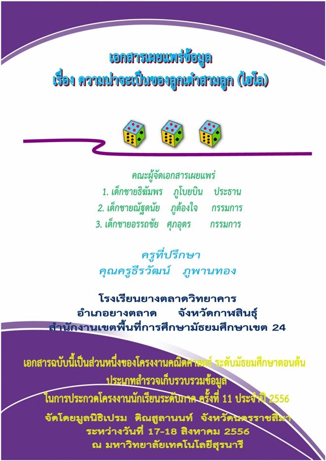เอกสารเผยแพร่ข้อมูล เรื่อง ความน่าจะเป็นของลูกเต๋าสามลูก (ไฮโล)