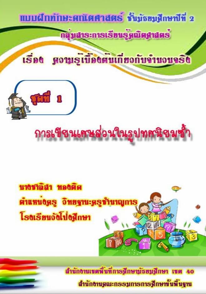 แบบฝึกทักษะคณิตศาสตร์ เรื่องความรู้เบื้องต้นเกี่ยวกับจำนวนจริง เรื่อง เศษส่วนและทศนิยมซ้ำ ผลงานครูนรากานต์ โนนกระโทก