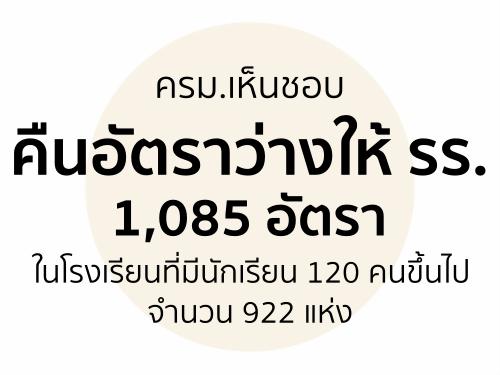 ครม.เห็นชอบ คืนอัตราว่างให้ รร.1,085 อัตราในโรงเรียนที่มีนักเรียน 120 คนขึ้นไปจำนวน 922 แห่ง