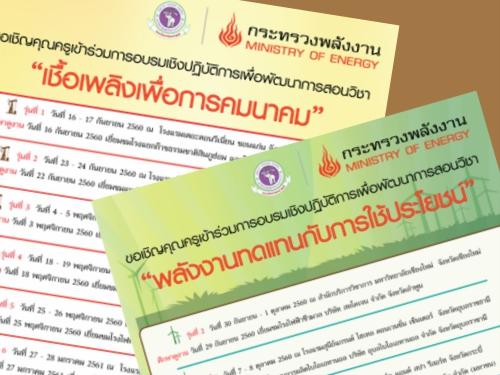 ขอเชิญคุณครูเข้าร่วมอบรมเชิงปฏิบัติการเพื่อพัฒนาการสอนวิชา "เชื้อเพลิงเพื่อการคมนาคม" และวิชา "พลังงานทดแทนกับการใช้ประโยชน์"