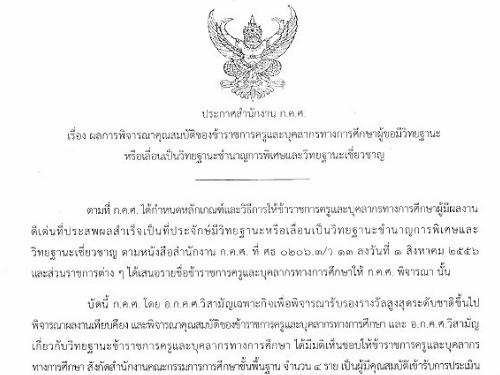 ด่วนที่สุด ประกาศผลการพิจารณาคุณสมบัติผู้มีผลงานดีเด่นที่ประสพผลสำเร็จเป็นที่ประจักษ์มีวิทยฐานะชำนาญการพิเศษ/เชี่ยวชาญ ทุกตำแหน่ง