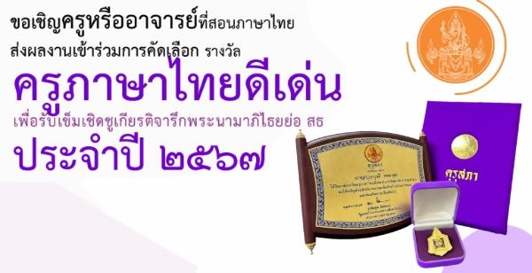 คุรุสภาประกาศ เรื่อง การคัดเลือกครูภาษาไทยดีเด่น เพื่อรับเข็มเชิดชูเกียรติจารึกพระนามาภิไธยย่อ สธ ประจำปี 2567