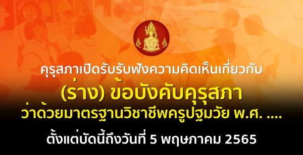 คุรุสภาเปิดรับรับฟังความคิดเห็นเกี่ยวกับ (ร่าง) ข้อบังคับคุรุสภา ว่าด้วยมาตรฐานวิชาชีพครูปฐมวัย พ.ศ. …. ตั้งแต่บัดนี้ถึงวันที่ 5 พฤษภาคม 2565