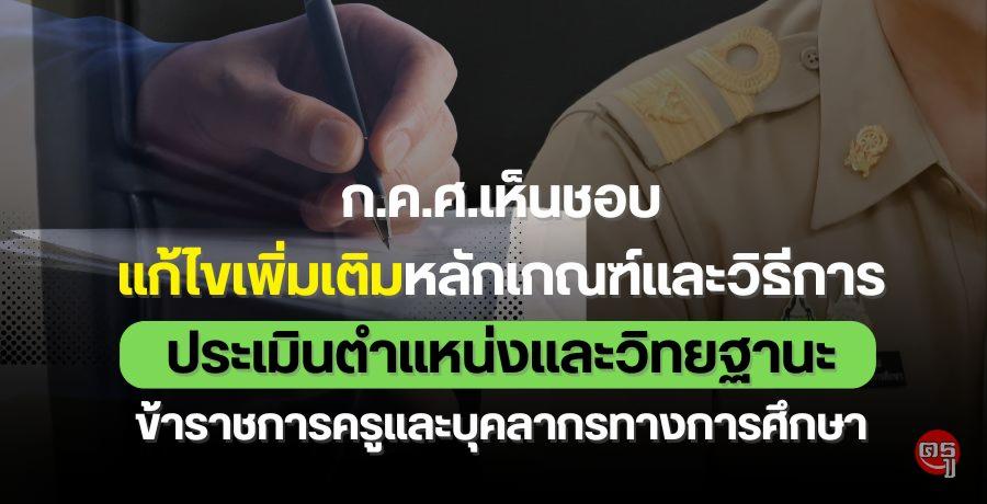 ก.ค.ศ.เห็นชอบแก้ไขเพิ่มเติมหลักเกณฑ์และวิธีการประเมินตำแหน่งและวิทยฐานะข้าราชการค.ูและบุค.ากรทางการศึกษา