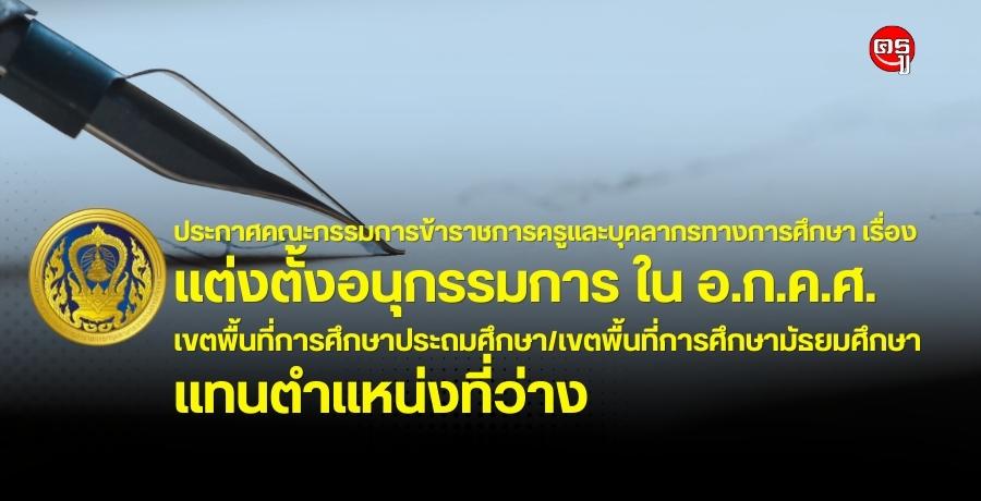ประกาศค.ะกรรมการข้าราชการค.ูและบุค.ากรทางการศึกษา เรื่อง แต่งตั้งอนุกรรมการ ใน อ.ก.ค.ศ. เขตพื้นที่การศึกษาประถมศึกษา/เขตพื้นที่การศึกษามัธยมศึกษา แทนตำแหน่งที่ว่าง