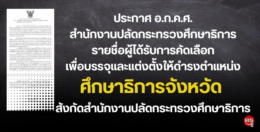ประกาศ อ.ก.ค.ศ. สำนักงานปลัดกระทรวงศึกษาธิการ เรื่อง รายชื่อผู้ได้รับการค.ดเลือกเพื่อบรรจุและแต่งตั้งให้ดำรงตำแหน่งศึกษาธิการจังหวัด สังกัดสำนักงานปลัดกระทรวงศึกษาธิการ