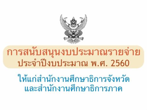 การสนับสนุนงบประมาณรายจ่ายประจำปีงบประมาณ พ.ศ. 2560 ให้แก่สำนักงานศึกษาธิการจังหวัดและสำนักงานศึกษาธิการภาค