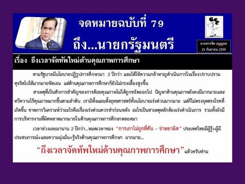 จดหมายฉบับที่ 79 ถึงนายกรัฐมนตรี เรื่อง ถึงเวลาจัดทัพใหม่ด้านคุณภาพการศึกษา