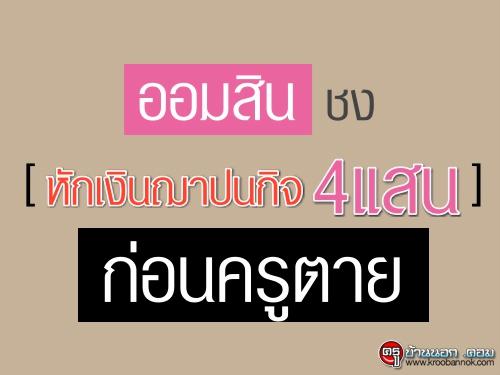 ออมสินชงหักเงินฌาปนกิจ4แสนก่อนครูตาย อ่านต่อคลิก[23 พ.ย. 2558](อ่าน 13,564 ครั้ง) (0.51%-315 ผู้โหวต) |