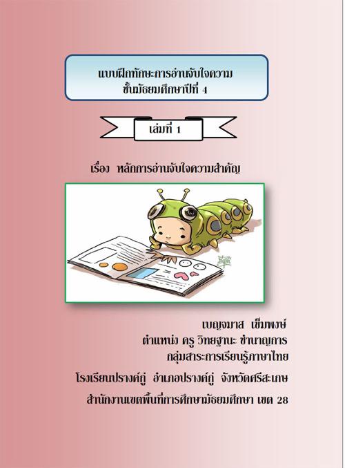 แบบฝึกทักษะการอ่านจับใจความ ชั้นมัธยมศึกษาปีที่ 4 เรื่องหลักการอ่านจับใจความสำคัญ ผลงานครูเบญจมาศ เข็มพงษ์