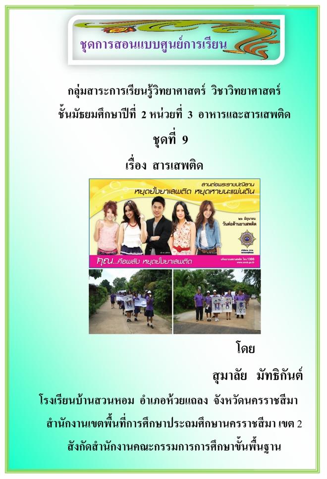 ชุดการสอนแบบศูนย์การเรียน ชั้นมัธยมศึกษาปีที่ 2 เรื่อง สารเสพติด ผลงานครูสุมาลัย มัทธิกันต์