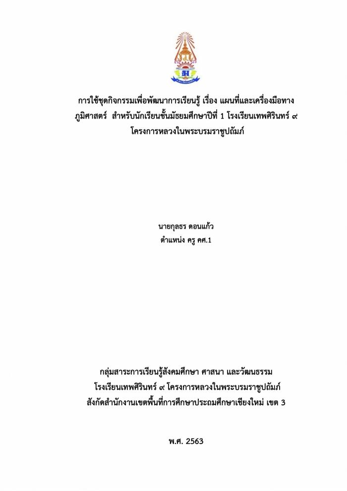 การใช้ชดุกิจกรรมเพื่อพัฒนาการเรียนรู้เรื่องแผนที่และเครื่องมอืทาง ภูมิศาสตร์ สําหรับนักเรียนชั้นมัธยมศึกษาปีที่ 1 โรงเรียนเทพศิรินทร์ ๙
