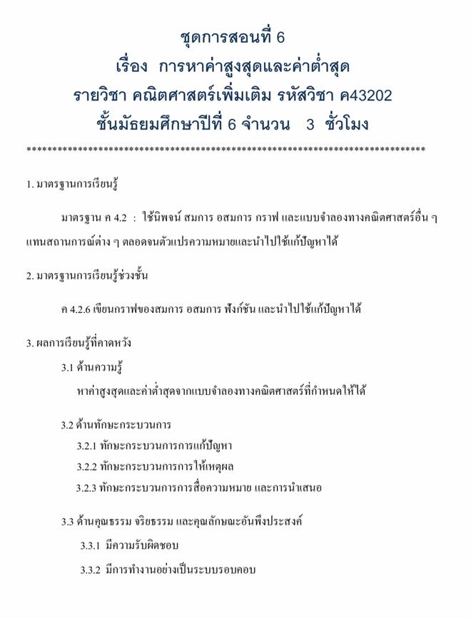 ชุดการสอน เรื่อง การหาค่าสูงสุดและค่าต่ำสุด ผลงานครูถวิล ต๊ะตา