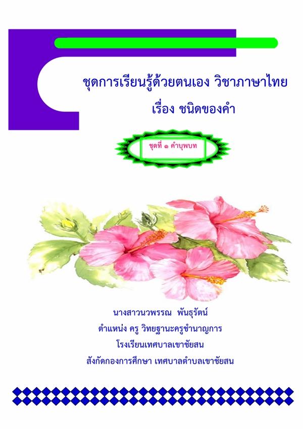 ชุดการเรียนรู้ด้วยตนเอง วิชาภาษาไทย เรื่อง ชนิดของคำ ผลงานครูนวพรรณ พันธุรัตน์