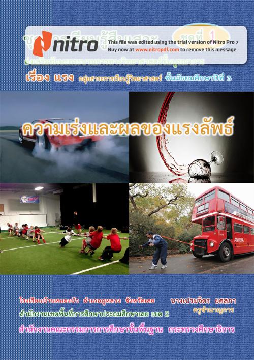 ชุดการเรียนรู้สืบเสาะที่ส่งเสริมทักษะกระบวนการทางวิทยาศาสตร์ขั้นบูรณาการ เรื่อง แรง ชั้นมัธยมศึกษาปีที่ 3 ผลงานครูเปรมจิตร ยศสภา
