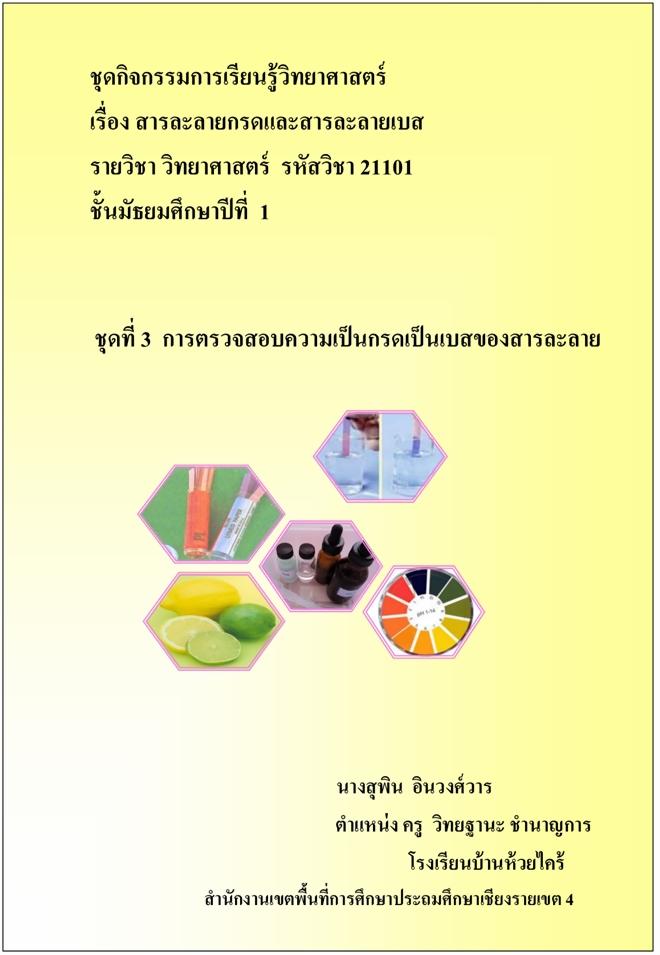ชุดกิจกรรมการเรียนรู้วิทยาศาสตร์ เรื่อง สารละลายกรดและสารละลายเบส ผลงานครูสุพิน อินวงศ์วาร