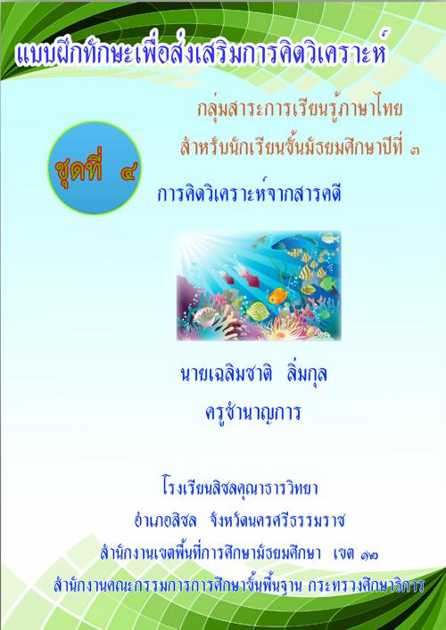 แบบฝึกทักษะเพื่อส่งเสริการคิดวิเคราะห์ กลุ่มสาระการเรียนรู้ภาษาไทย ม.3 ชุดที่ 4 การคิดวิเคราะห์จากสารคดี ผลงานครูเฉลิมชาติ ลิ่มกุล