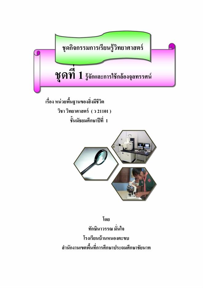 ชุดกิจกรรมการเรียนรู้วิทยาศาสตร์ ชุดที่ 1 รู้จักและการใช้กล้องจุลทรรศน์ ผลงานครูทักษินาวรรณ มั่นใจ