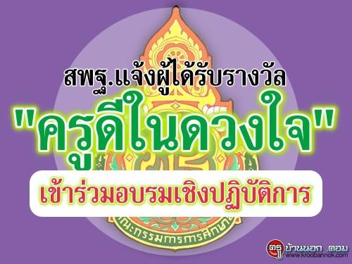 สพฐ.แจ้งผู้ได้รับรางวัล "ครูดีในดวงใจ" เข้าร่วมอบรมเชิงปฏิบัติการ