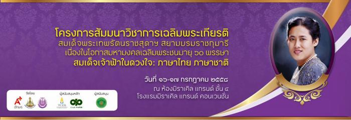 เชิญร่วมโครงการสัมมนาวิชาการเฉลิมพระเกียรติ "สมเด็จเจ้าฟ้าในดวงใจ: ภาษาไทย ภาษาชาติ"