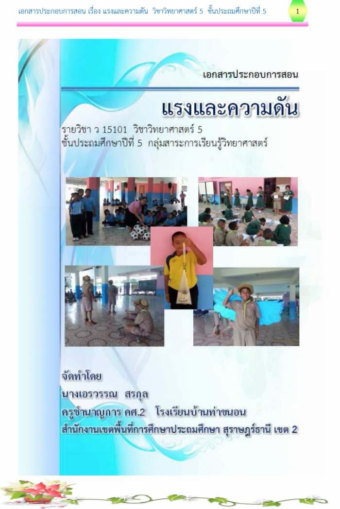 เอกสารประกอบการสอน เรื่อง แรงและความดัน วิชาวิทยาศาสตร์ ป.5 ผลงานครูเอรวรรณ สรกุล