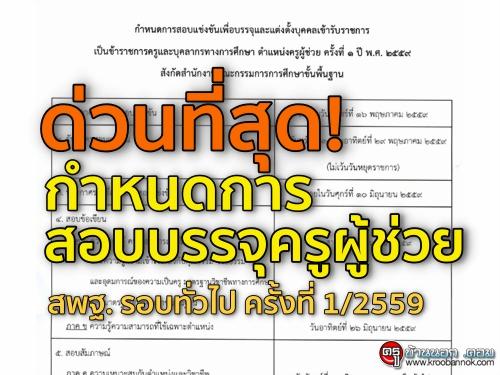 ด่วนที่สุด! กำหนดการสอบบรรจุครูผู้ช่วย สพฐ. รอบทั่วไป ครั้งที่ 1/2559