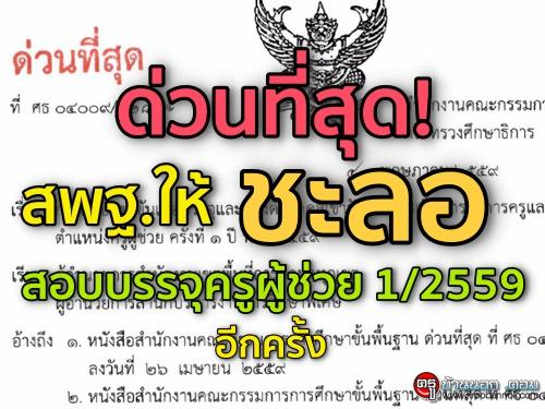 ด่วนที่สุด! สพฐ.ให้ชะลอการสอบแข่งขัน ตำแหน่งครูผู้ช่วย 1/2559 อีกครั้ง