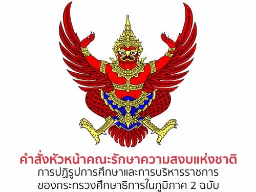 ด่วนที่สุด! คําสั่งหัวหน้าคณะรักษาความสงบแห่งชาติ การปฏิรูปการศึกษาและการบริหารราชการของกระทรวงศึกษาธิการในภูมิภาค 2 ฉบับ