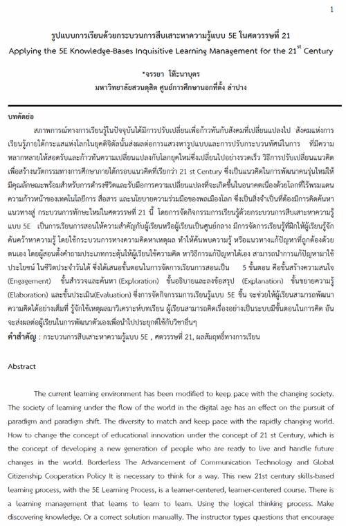 รูปแบบการเรียนด้วยกระบวนการสืบเสาะหาความรู้แบบ 5E ในศตวรรษที่ 21 : จรรยา โท๊ะนาบุตร