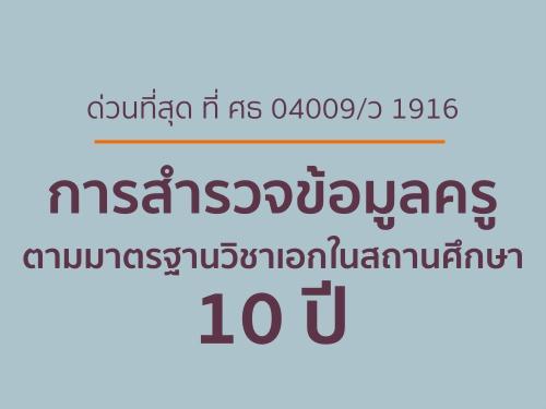 การสำรวจข้อมูลครูตามมาตรฐานวิชาเอกในสถานศึกษา 10 ปี