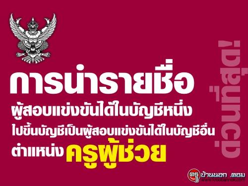การนำรายชื่อผู้สอบแข่งขันได้ในบัญชีหนึ่งไปขึ้นบัญชีเป็นผู้สอบแข่งขันได้ในบัญชีอื่น ตำแหน่งครูผู้ช่วย