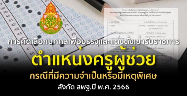 การคัดเลือกบุคคลเพื่อบรรจุและแต่งตั้งเข้ารับราชการ ตำแหน่งครูผู้ช่วย กรณีที่มีความจำเป็นหรือมีเหตุพิเศษ สังกัด สพฐ.ปี พ.ศ. 2566