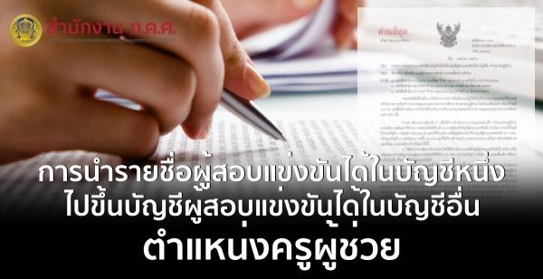 การนำรายชื่อผู้สอบแข่งขันได้ในบัญชีหนึ่งไปขึ้นบัญชีผู้สอบแข่งขันได้ในบัญชีอื่น ตำแหน่งครูผู้ช่วย