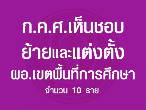 ก.ค.ศ.เห็นชอบการย้ายและแต่งตั้งผู้ดำรงตำแหน่งผู้อำนวยการสำนักงานเขตพื้นที่การศึกษา จำนวน 10 ราย