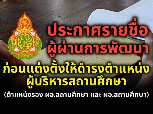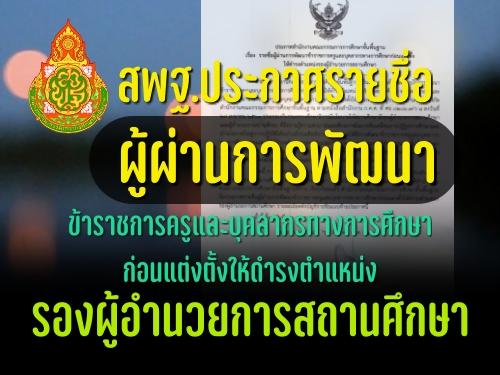 สพฐ.ประกาศรายชื่อผู้ผ่านการพัฒนาข้าราชการครูและบุคลากรทางการศึกษาก่อนแต่งตั้งให้ดำรงตำแหน่งรองผู้อำนวยการสถานศึกษา