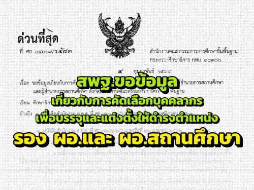 สพฐ.ขอข้อมูลเกี่ยวกับการคัดเลือกบุคคลากรเพื่อบรรจุและแต่งตั้งให้ดำรงตำแหน่ง รองผู้อำนวยการสถานศึกษาและผู้อำนวยการสถานศึกษา