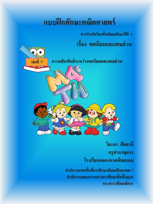 แบบฝึกทักษะคณิตศาสตร์ ม.1 ทศนิยมและเศษส่วน ผลงานครูศรีทอง ชัยชนะ