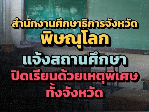 สำนักงานศึกษาธิการจังหวัดพิษณุโลก แจ้งสถานศึกษาปิดเรียนด้วยเหตุพิเศษทั้งจังหวัด