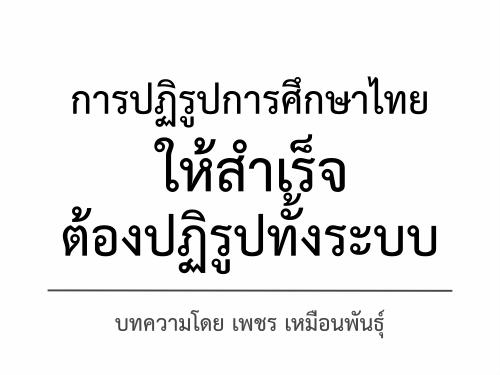 การปฏิรูปการศึกษาไทยให้สำเร็จ ต้องปฏิรูปทั้งระบบ โดย เพชร เหมือนพันธุ์