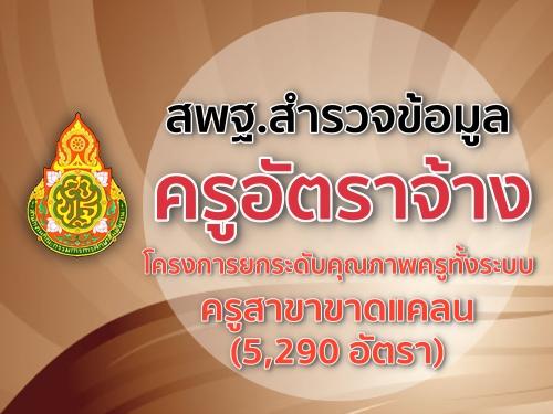 สพฐ.สำรวจข้อมูลครูอัตราจ้างโครงการยกระดับคุณภาพครูทั้งระบบครูสาขาขาดแคลน (5,290 อัตรา)