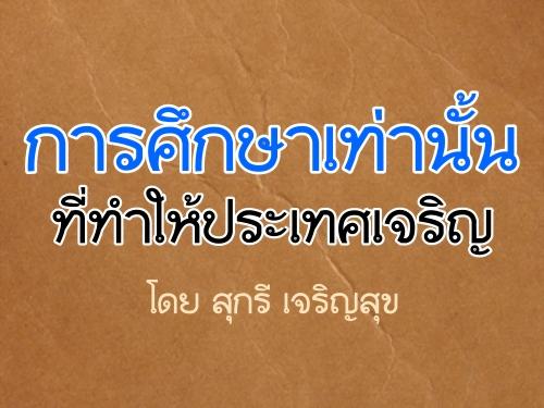 การศึกษาเท่านั้นที่ทำให้ประเทศเจริญ : โดย สุกรี เจริญสุข