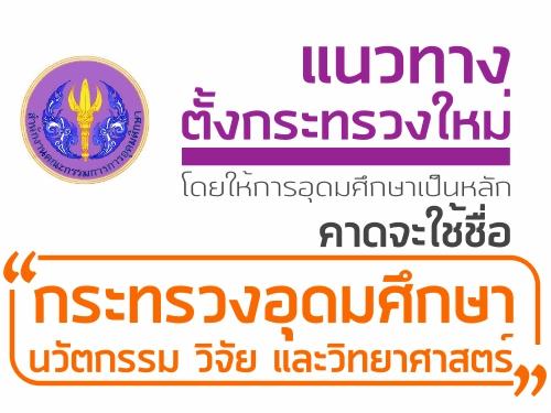 แนวทางตั้งกระทรวงใหม่โดยให้การอุดมศึกษาเป็นหลัก คาดจะใช้ชื่อ "กระทรวงอุดมศึกษา นวัตกรรม วิจัย และวิทยาศาสตร์"