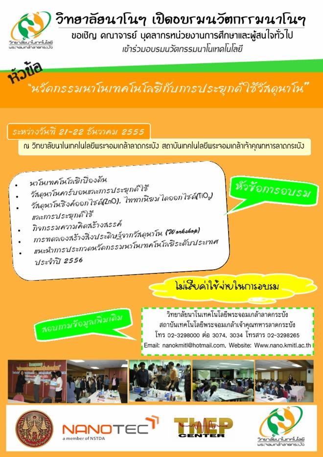 ขอเชิญอบรมหัวข้อ "นวัตกรรมนาโนเทคโนโลยีกับการประยุกต์ใช้วัสดุนาโน"
