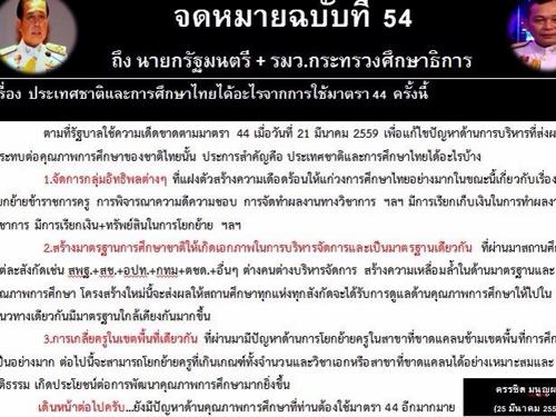 จดหมายฉบับที่ 56 ถึงนายกรัฐมนตรี+รัฐมนตรีว่าการกระทรวงศึกษาธิการ เรื่อง มาตรา 44 ...ครูและนักเรียนได้อะไร ?